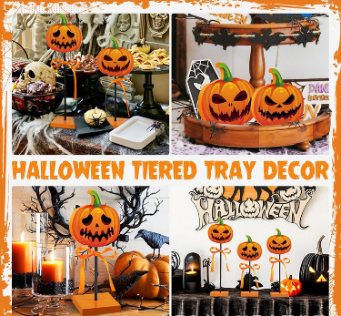 Wooden Halloween Tabletop Pumpkin Ornaments – for Home Party Ambiance & Solid Wood Decor