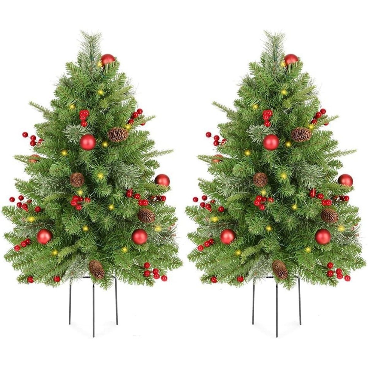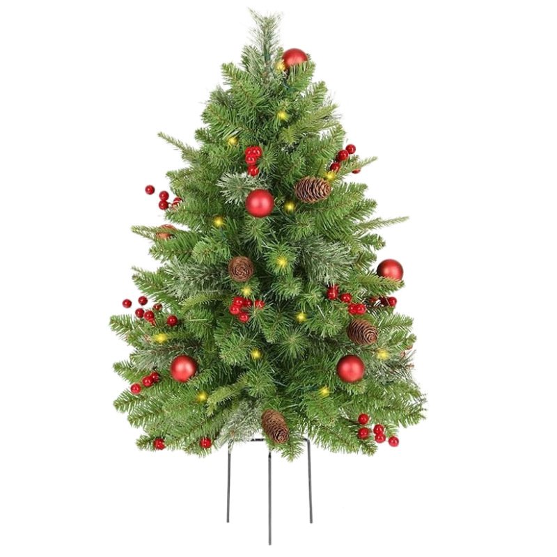 Best – selling Christmas Outdoor Yard & Beach Decorations Pine Needle & PVC Ground – Stake Mini Christmas Trees with String Lights