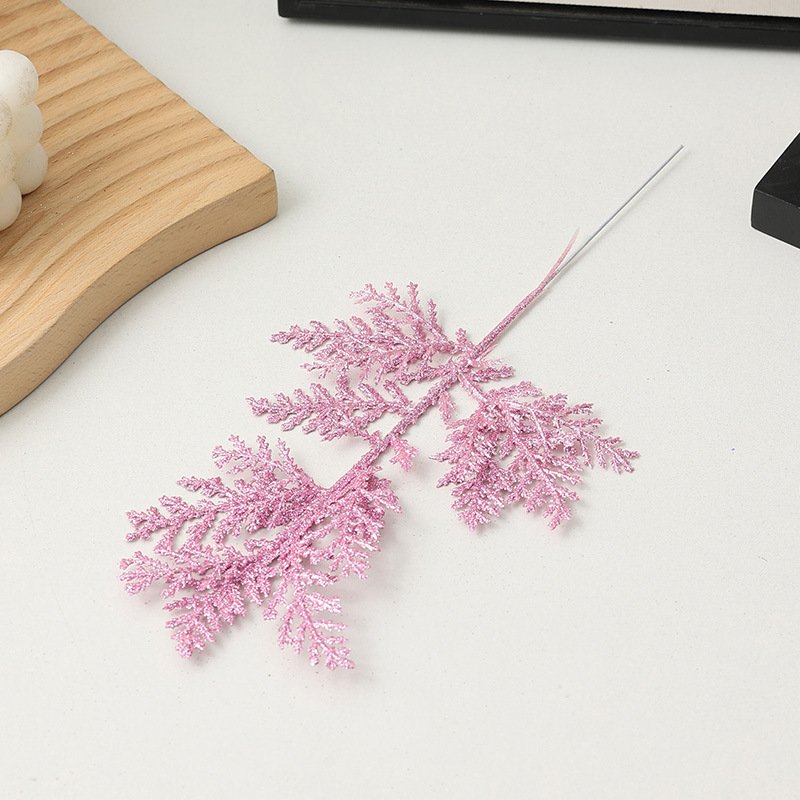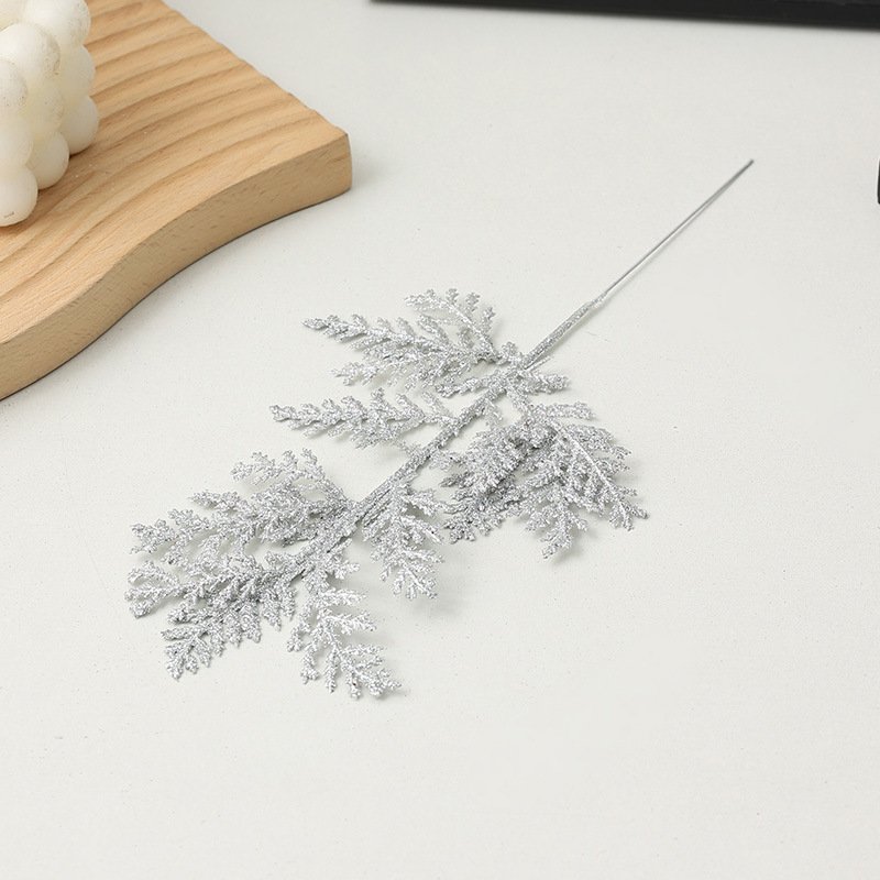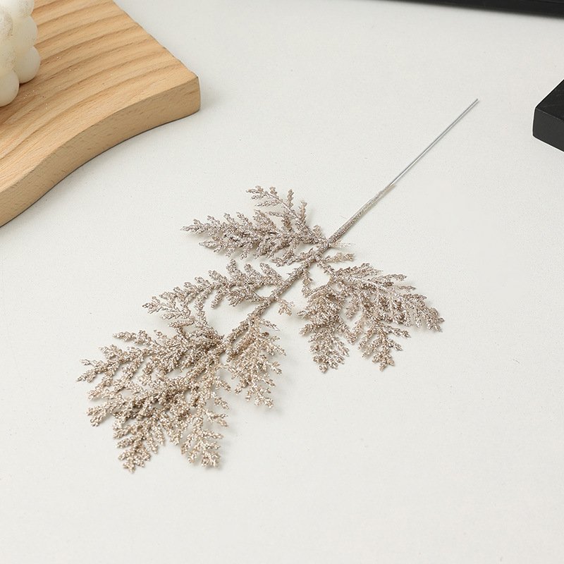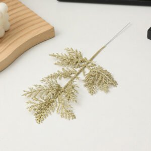 Christmas Decoration Pine Branches, Christmas Tree Insertion Accessories, Gold – Powdered Glittery Simulated Plant Pine Needles