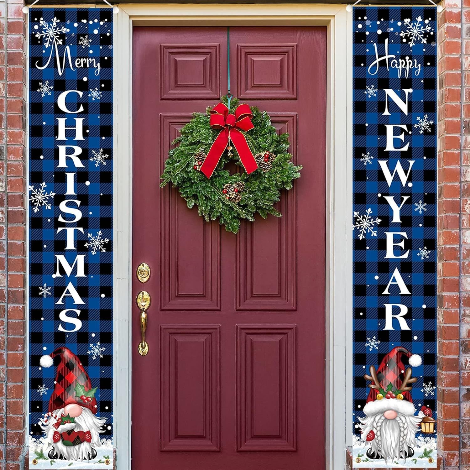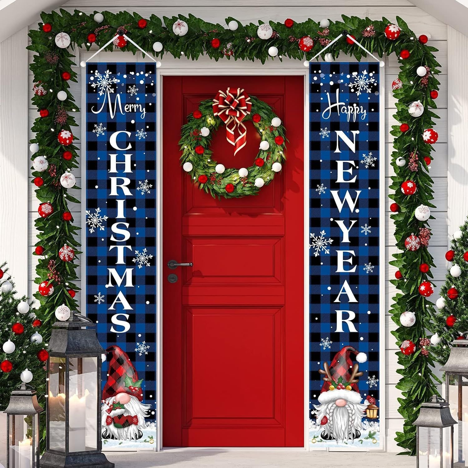 Welcome Winter Christmas Gnome Porch Banner Sign, Outdoor Home Decoration Couplet Banner