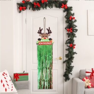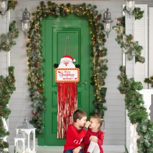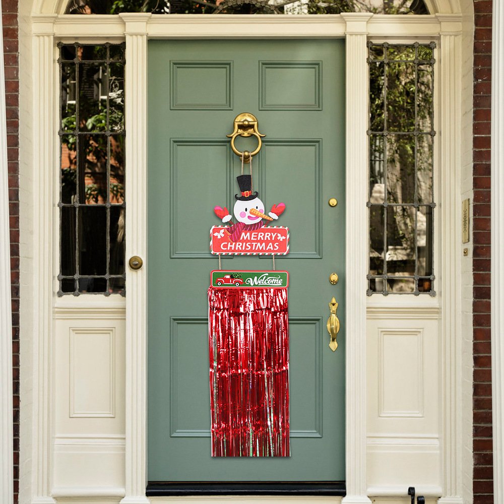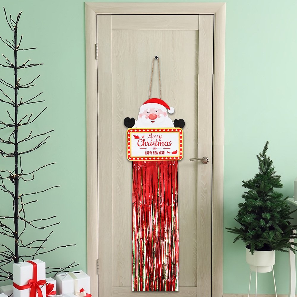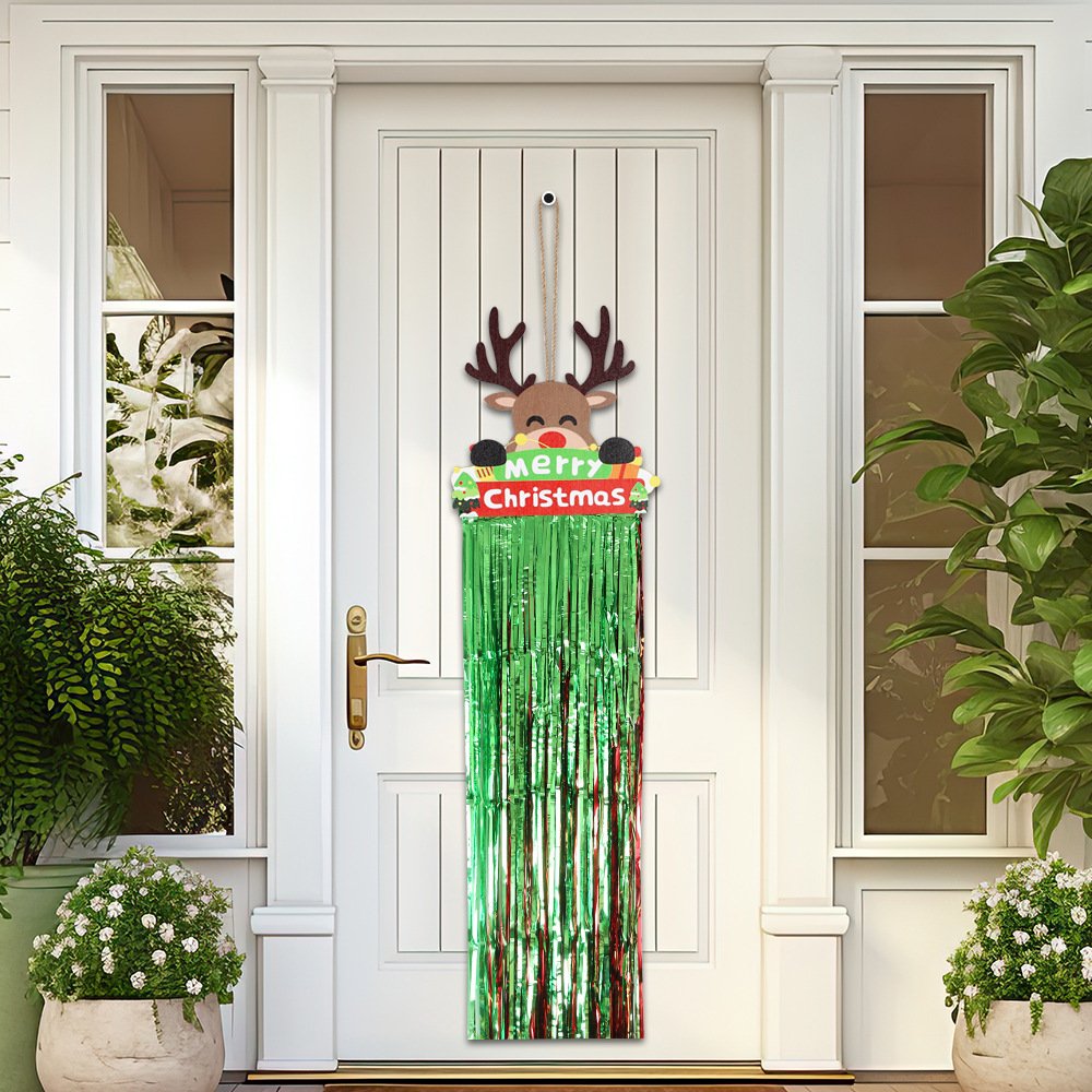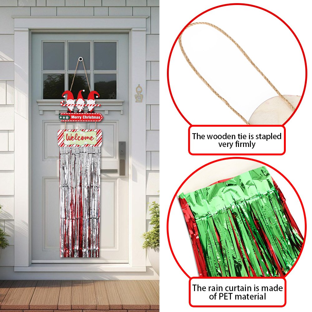 Christmas wooden crafts: red and green tassel wooden plaque pendants, Christmas home decorations, snowman and reindeer welcome door plaques