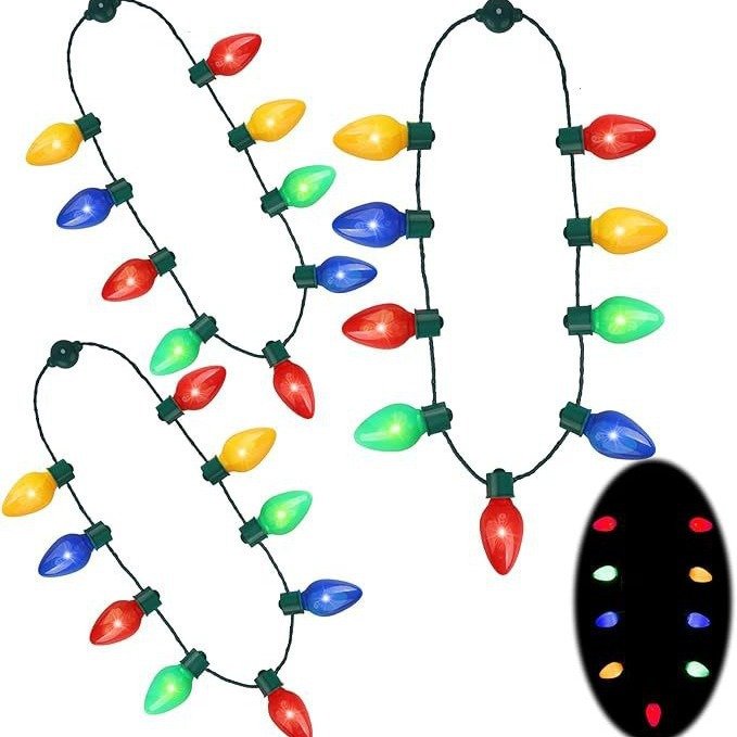Christmas LED large bulb string necklace, 9-light glowing necklace, festival supplies, wearable party necklace