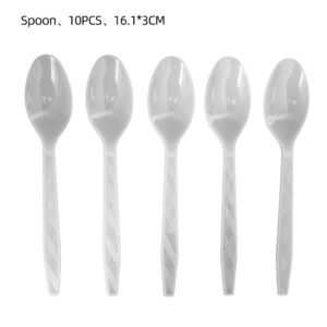 Spoons 10P, Paper Towels 20P, Knives 10P, Tablecloth 1P, Forks 10P, Paper Cups 10P, 7-inch Plates 10P, 9-inch Plates 10P, Paper Straws 10P