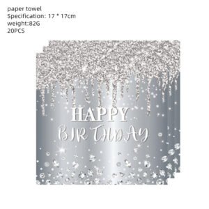 New Style Silver Diamond Shining “Happy Birthday” Decorative Disposable Tableware, Paper Cups, Paper Towels and Party Supplies