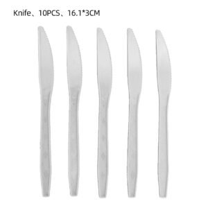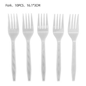 Spoons 10P, Paper Towels 20P, Knives 10P, Tablecloth 1P, Forks 10P, Paper Cups 10P, 7-inch Plates 10P, 9-inch Plates 10P, Paper Straws 10P