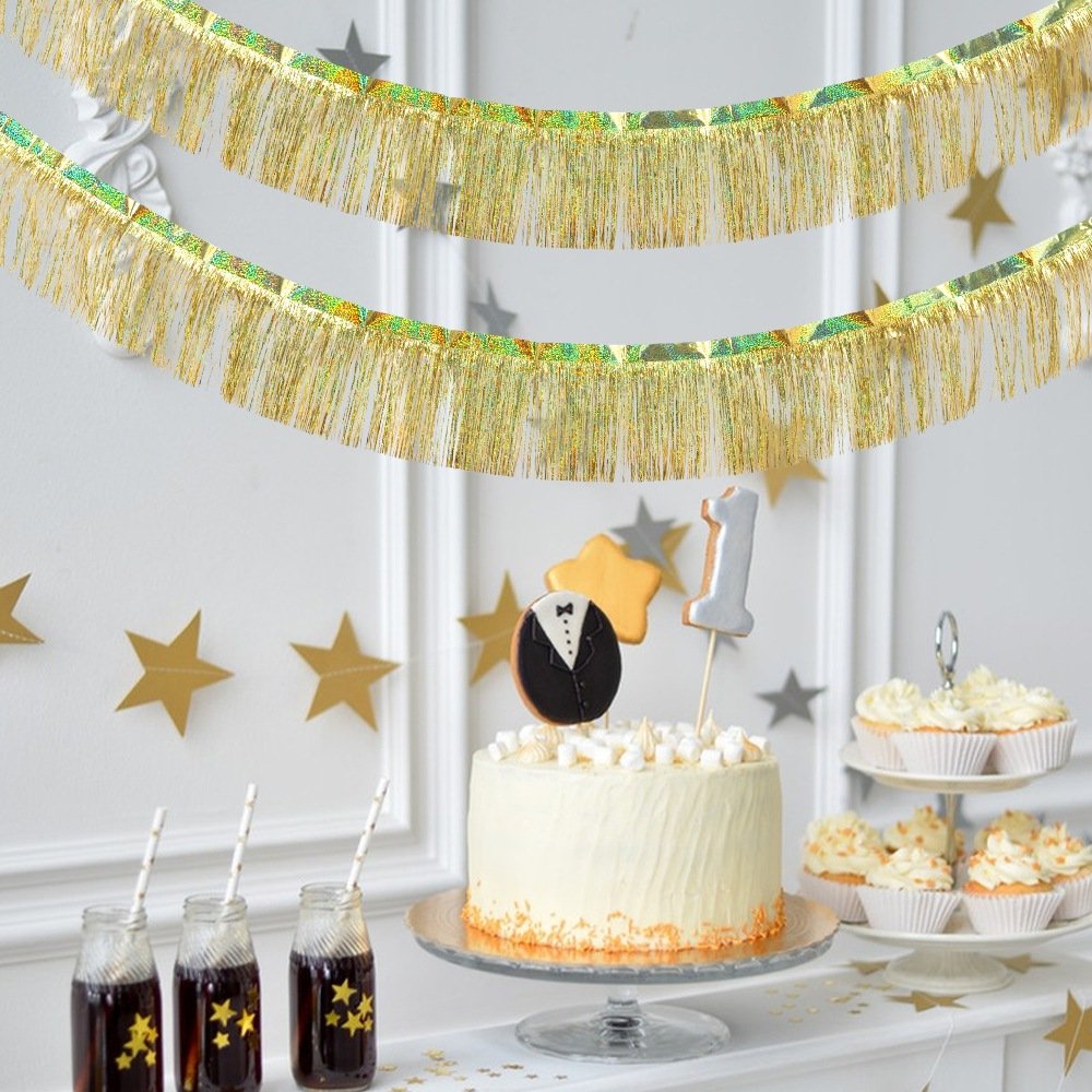 Laser tinsel streamer, suitable for birthday party decorations and wedding backdrop arrangements, tassel tinsel banner