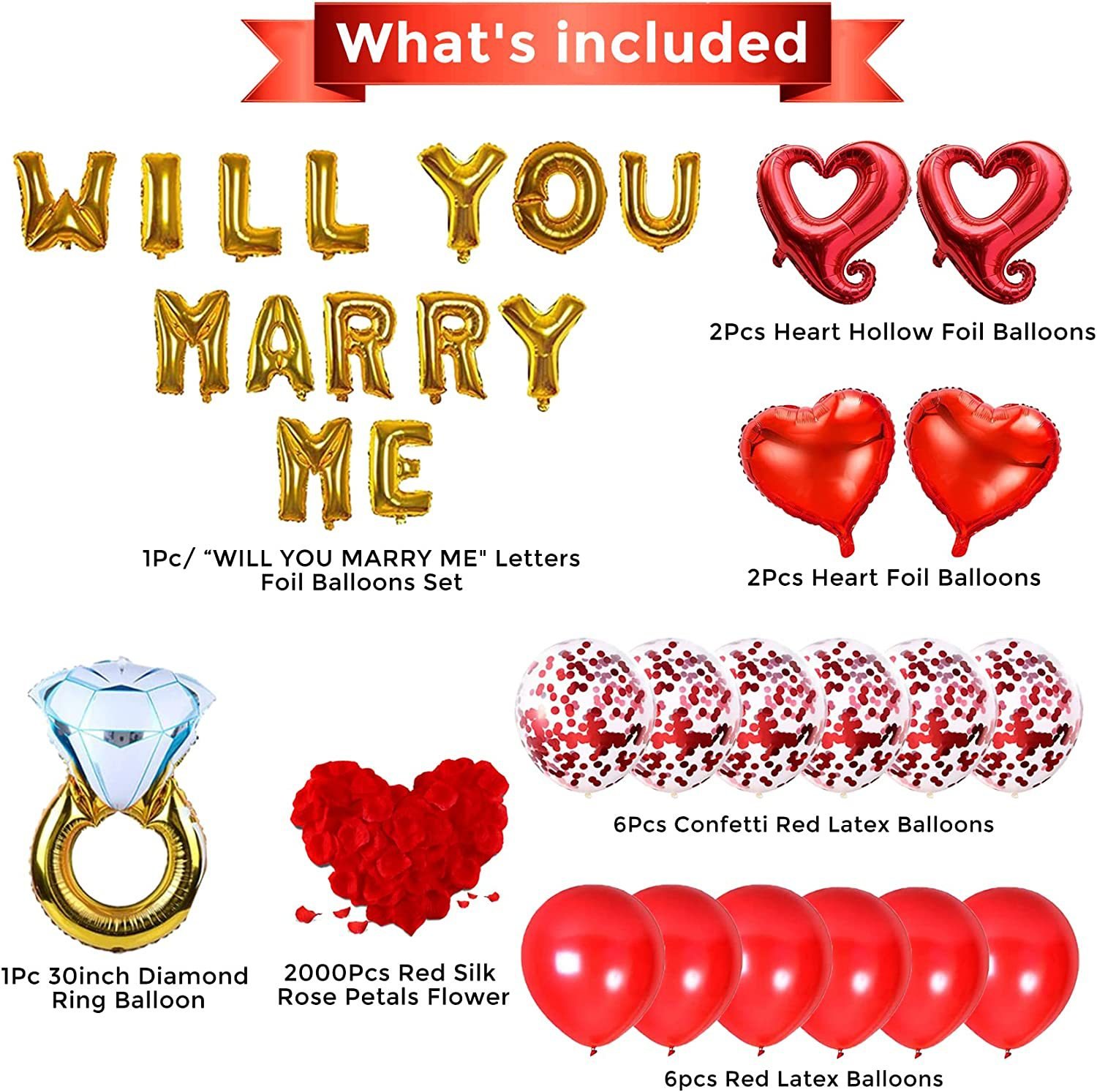 “Will you marry me” letter balloon combination, diamond ring, love heart, hook heart, proposal party decoration balloons