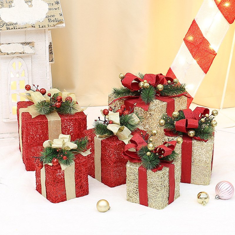Christmas Light – up Ornament Gift Box Set of 3 – Iron Art Gift Box Display Decorations for Malls & Hotels