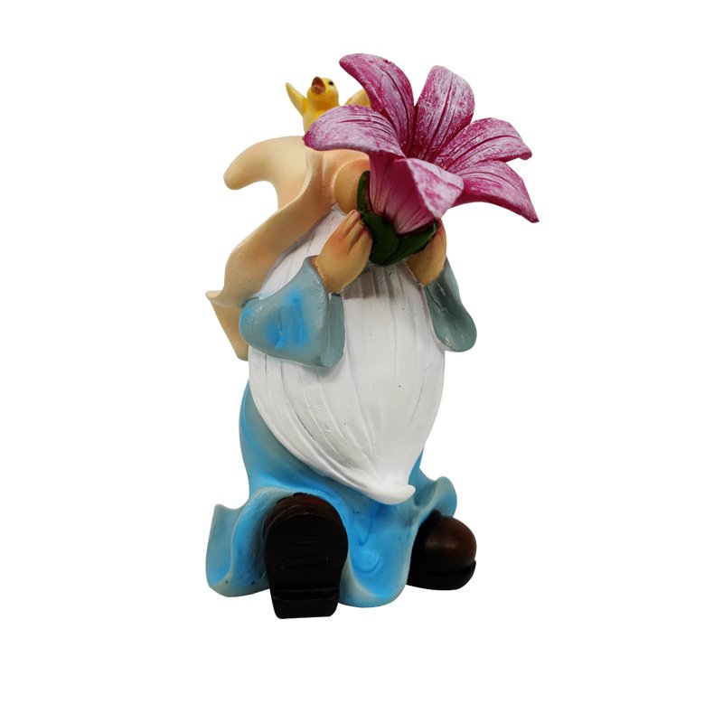 Craft Dwarf Garden Outdoor Decoration, New Product Flower – Holding Faceless Elf Ornament, Creative