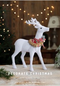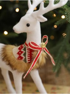Large-Sized White Reindeer Ornament with Bowknot & Bells – Christmas Mall Window Display Decor