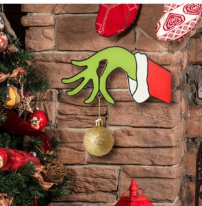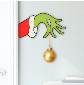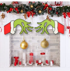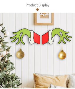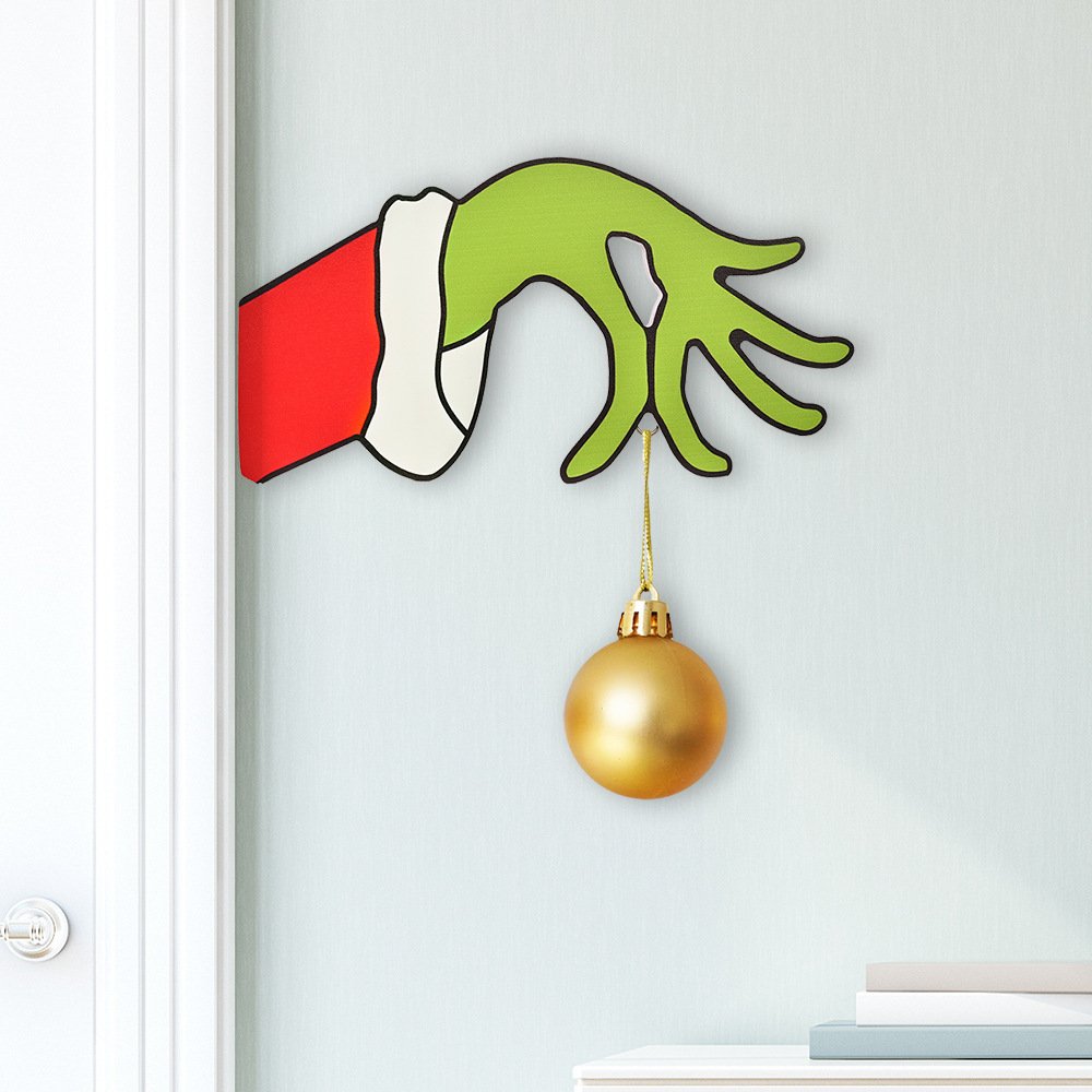 New Christmas Decorations Wooden Door Hanging Sign, Grinch Wreath, Home & Mall Decorations