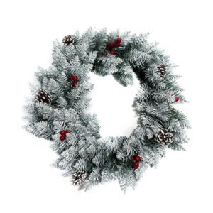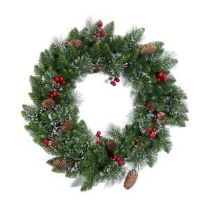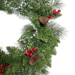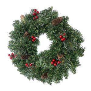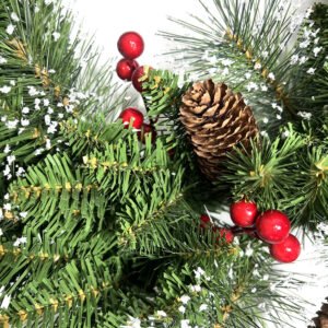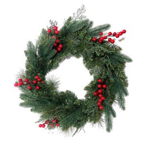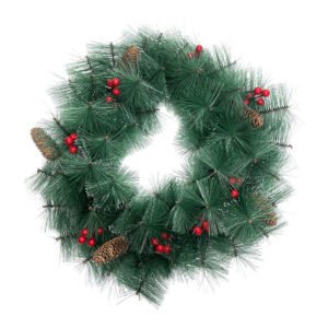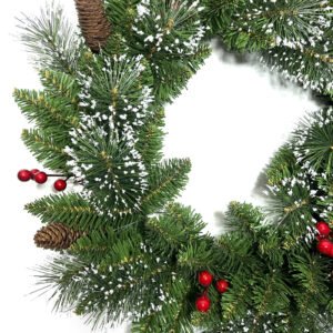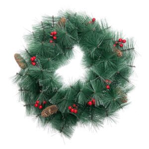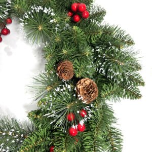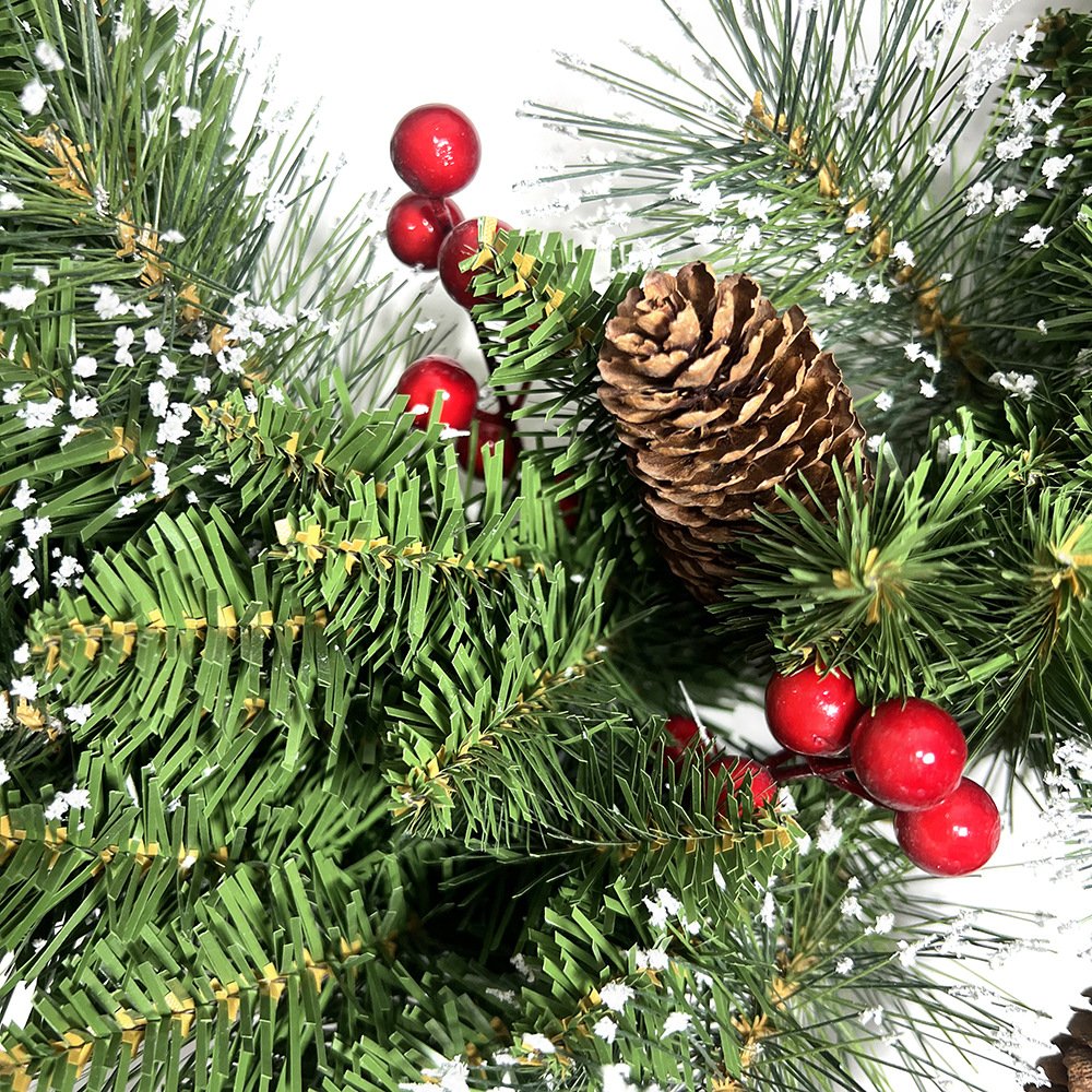 Red Berry Christmas Wreath with Green Vines Artificial Flower & Pinecone Mixed Christmas Door Decor