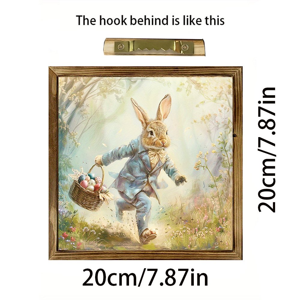 Easter Collection Wooden Bunny & Egg Photo Frame Sign Tabletop Decor for Easter Party Decorations
