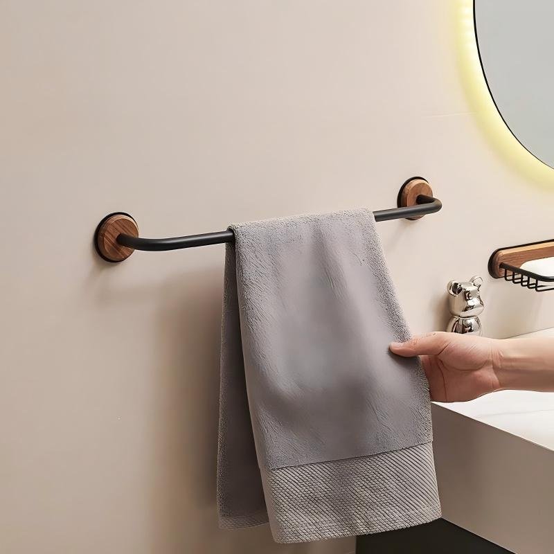 No drilling, Nail free, Adhesive – Solid Wood Bathroom Towel Rack