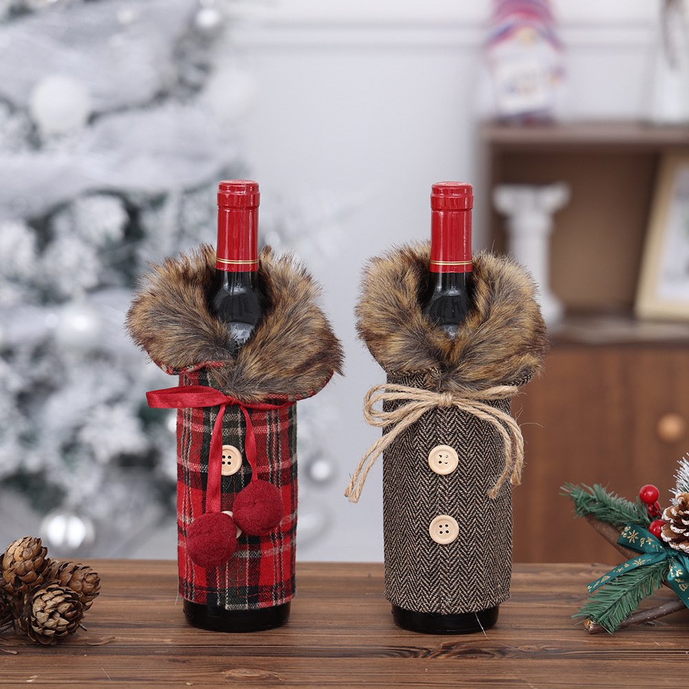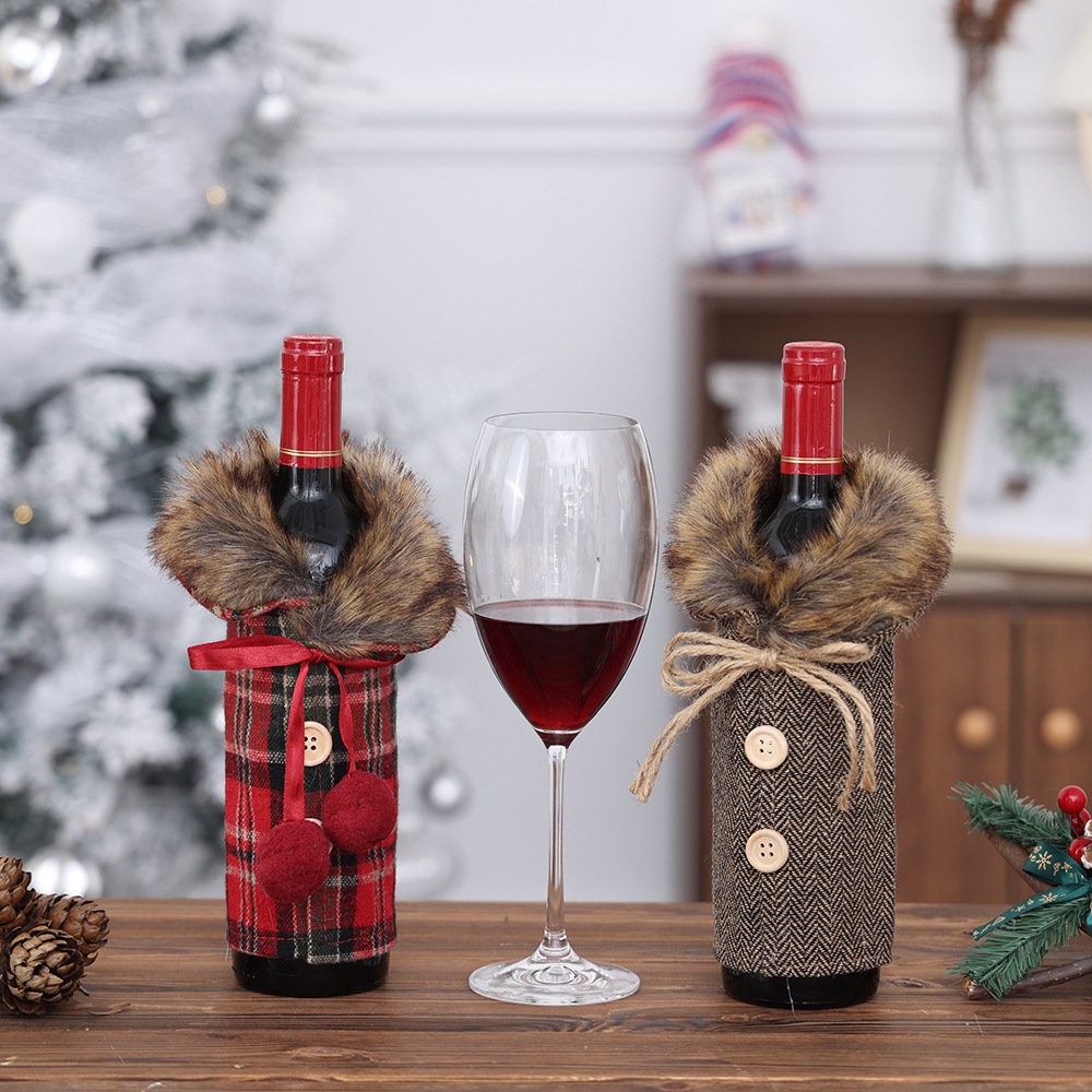 Christmas Themed Burlap Wine Bottle Cover Set (Pair of 2)