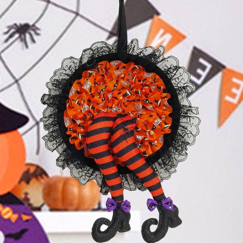 Best-Selling Fabric Witch Legs Wreath Door Hanger – Spooky HalloweenGhost Festival Decor Prop