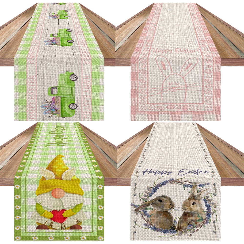 Easter Decorative Table Runner Linen Durable Table Mat Sturdy Stain-Resistant Tablecloth