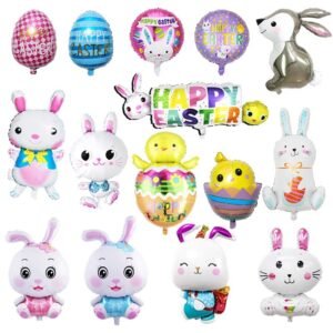 Easter Foil Balloons – Egg, Bunny, Chick & Betsy Rabbit Cartoon Shapes Party Decorations for Easter Celebrations