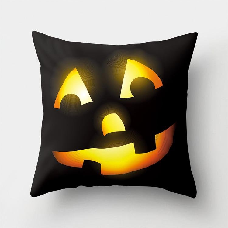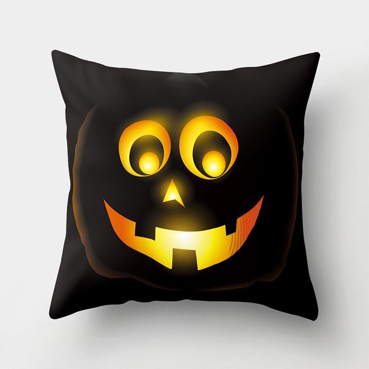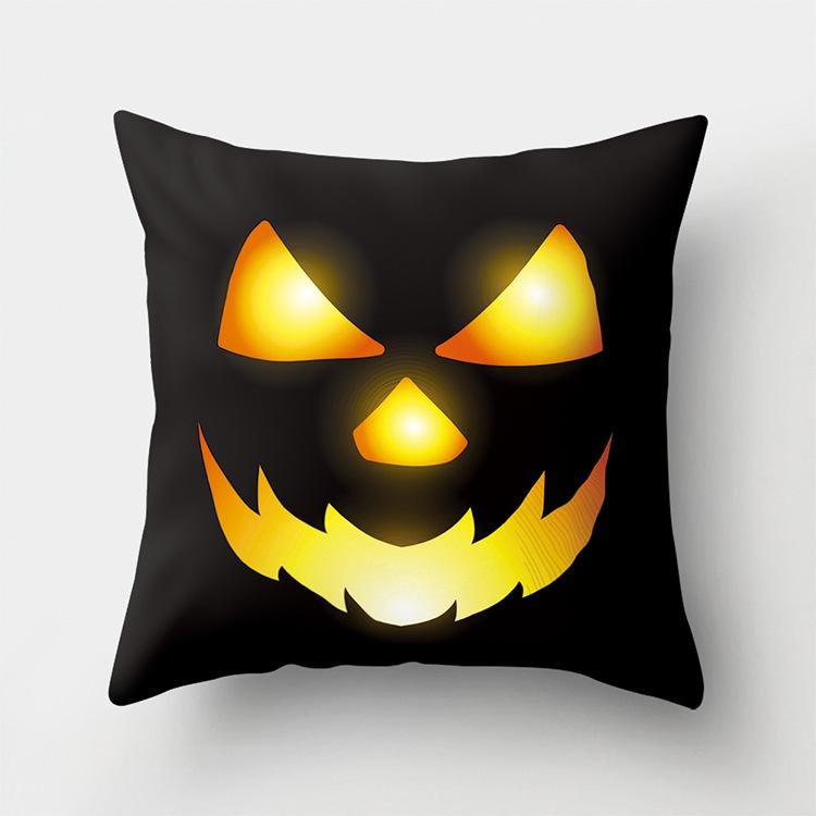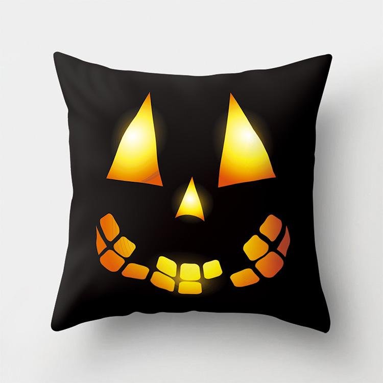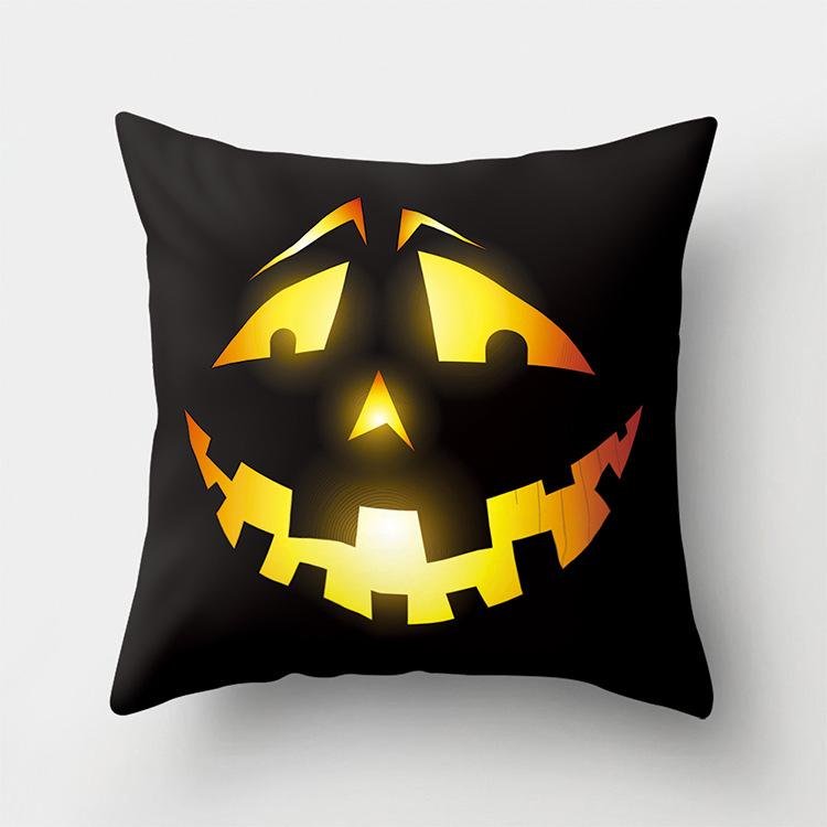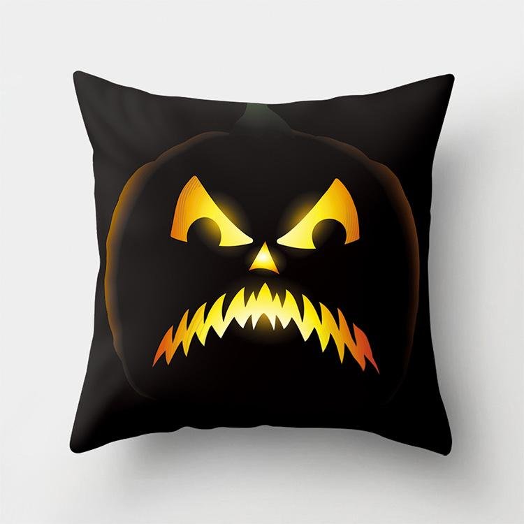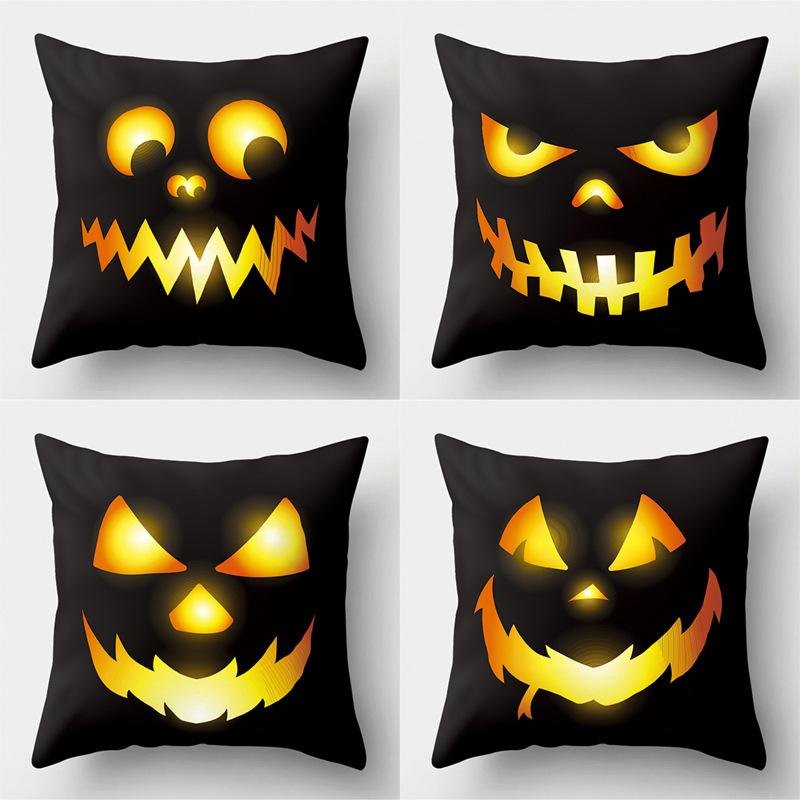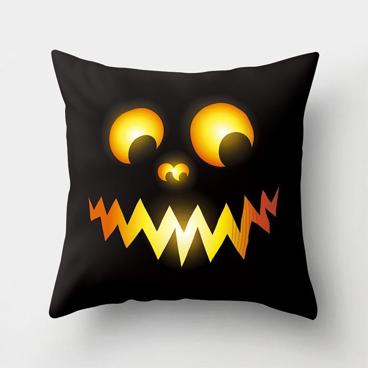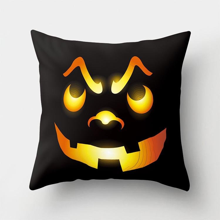 Halloween Home Decor Cotton Linen Throw Pillow – 3D Scary Pumpkin Design for Housewarming Gifts