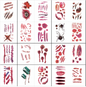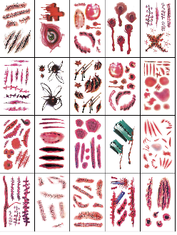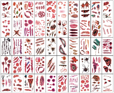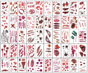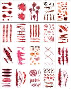 Halloween realistic horror scar tattoo stickers, scar tattoos, body art party props, role-playing tattoo stickers, scars
