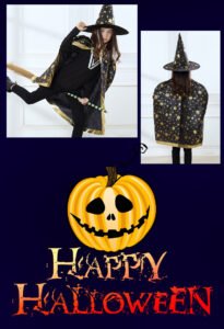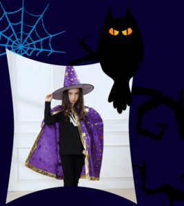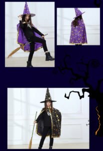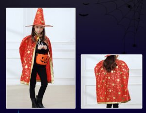 Kids Halloween Cosplay Cape Set – Magician Wizard Gold Star Cape & Hat for Party