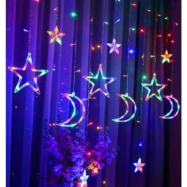 LED Star and Moon Curtain Lights Decorative Lights Solar-Powered Remote-Controlled Star Lights Outdoor Camping String Lights Colorful Lights