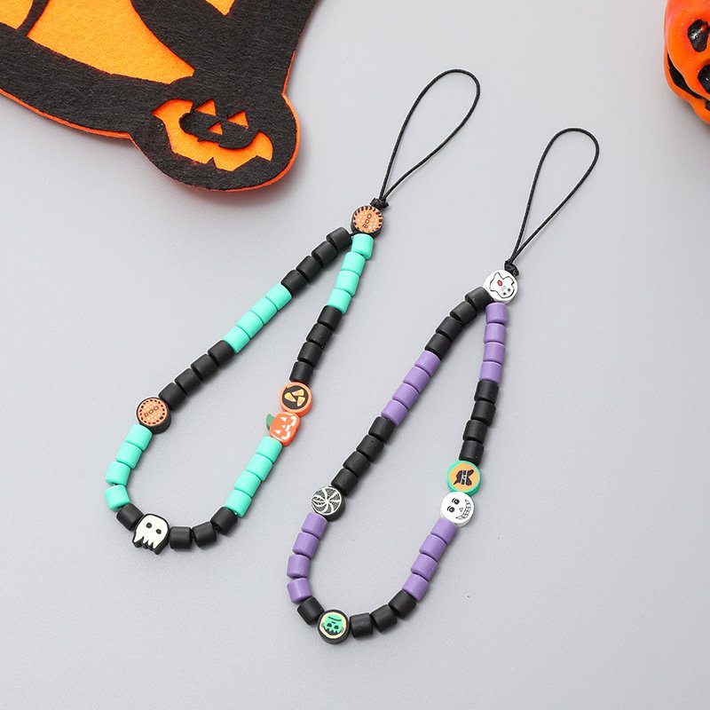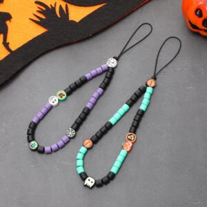 New Halloween Phone Strap for Women – Pumpkin Skull Charms, Anti-Fall Wrist Lanyard