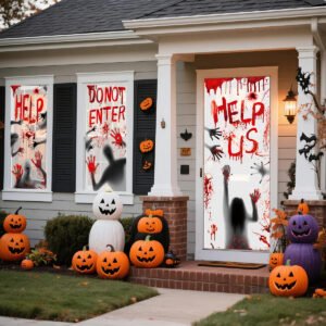 New Large-Sized Bloody Door Curtain & Window Decals Horror-Themed Halloween Party Decorations for Window Displays